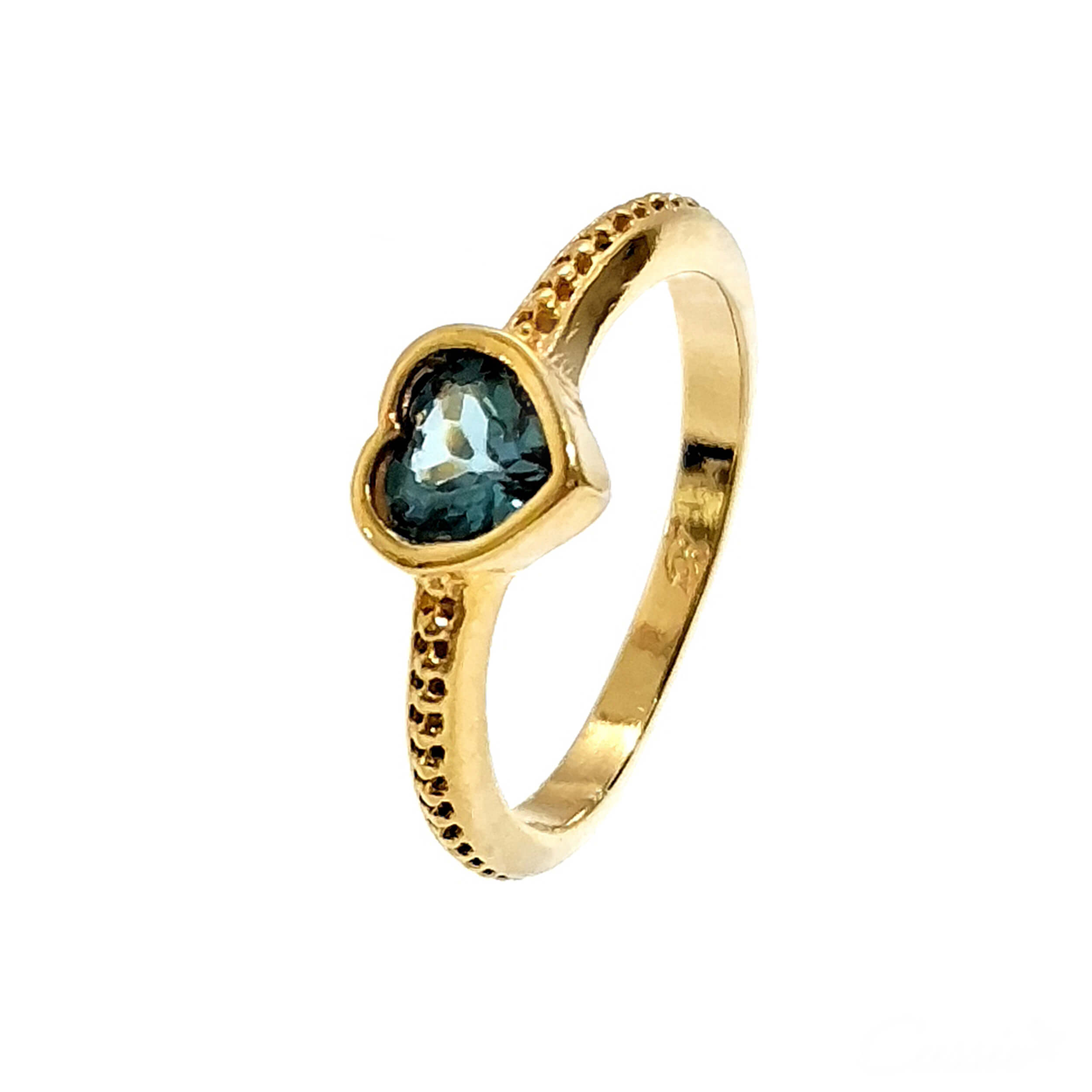 Anel de coração, todo detalhado, com uma zircônia na cor azul.