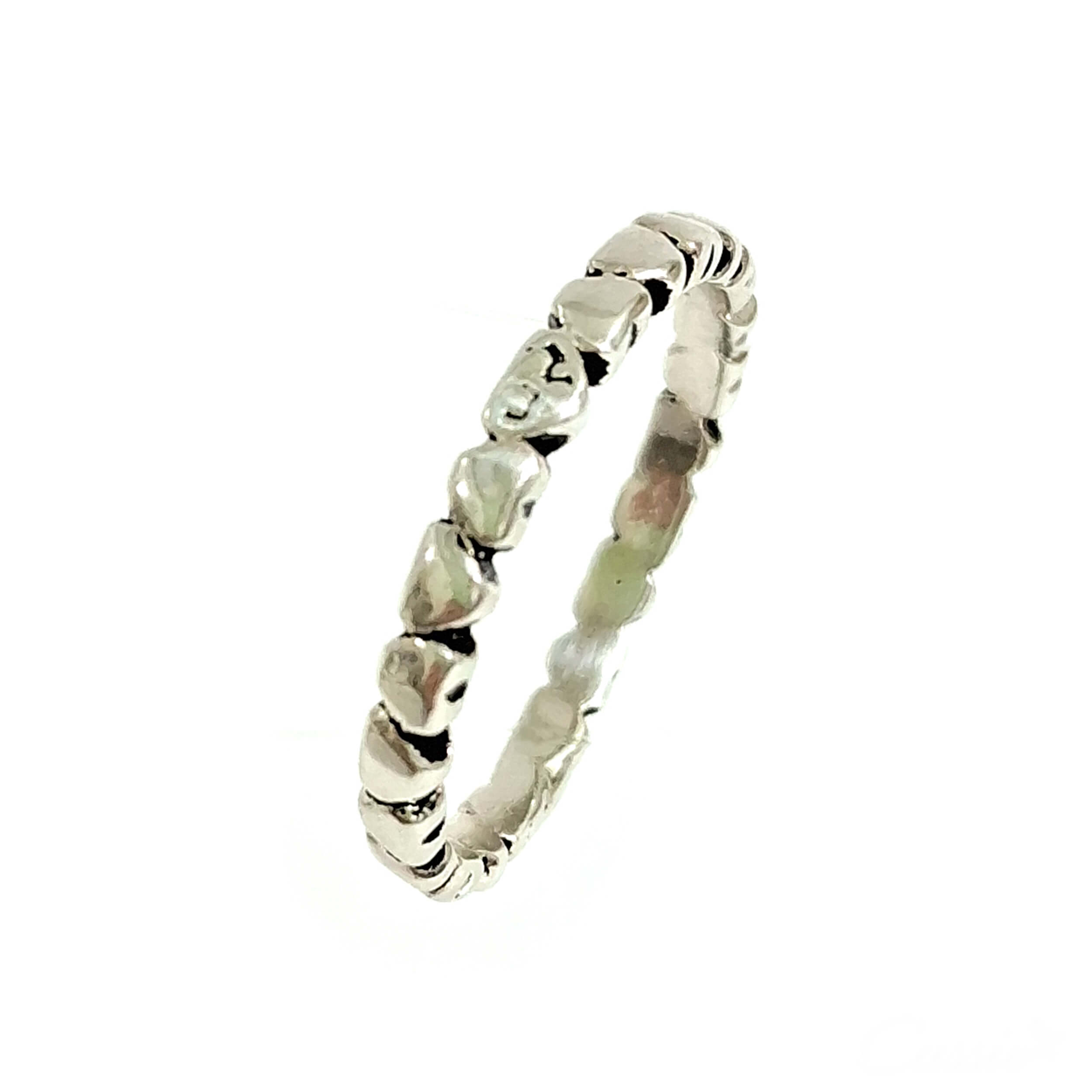 Anel de corações pequenos e detalhe em um dos corações.