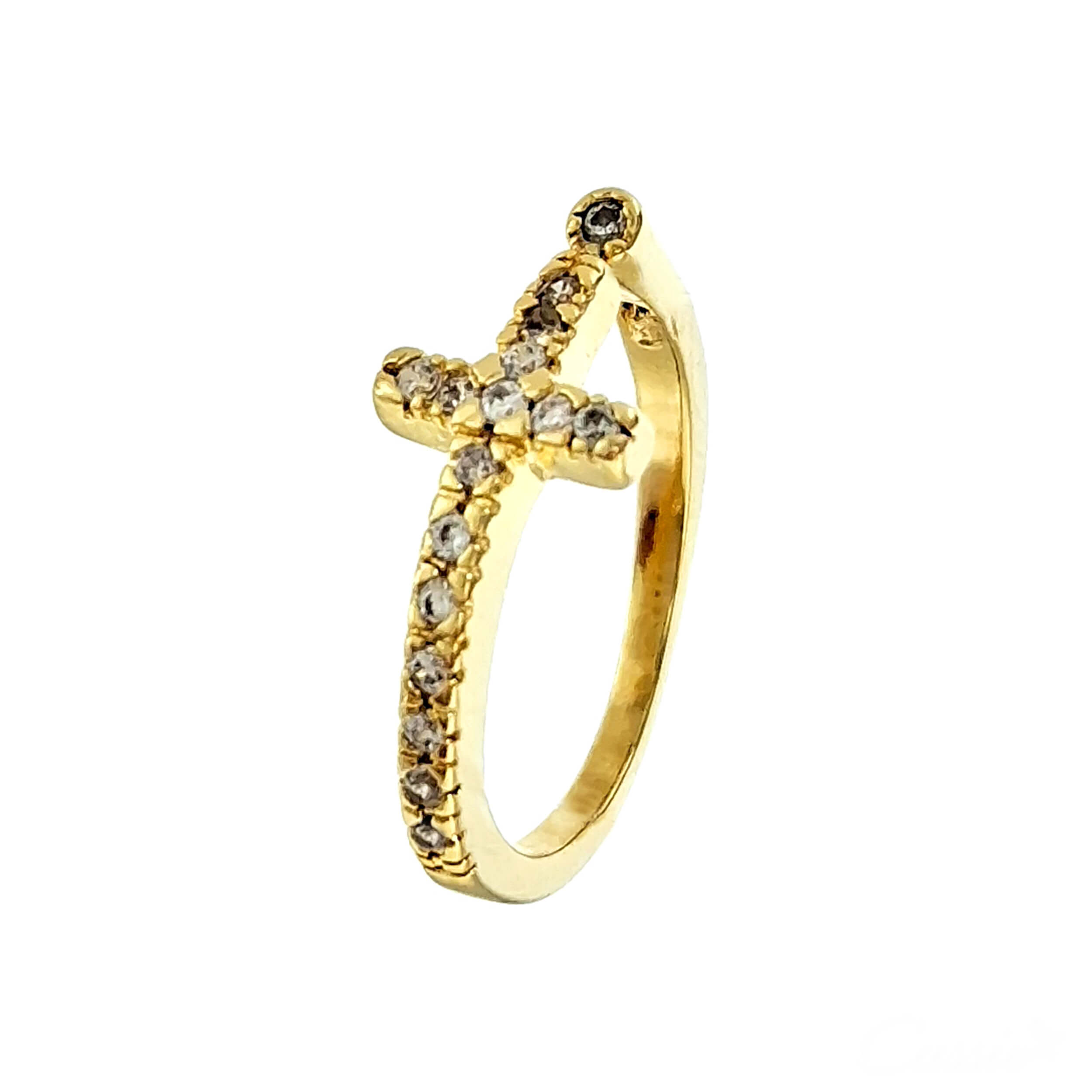 Anel regulável de cruz com zircônias. O design ajustável garante conforto para qualquer dedo. Além disso, é uma semijoia atemporal e versátil, que pode ser usada em uma ocasião especial ou no dia a dia. O anel de cruz tem forte valor emocional, pois representa a fé e a devoção de quem usa a semijoia, gera uma conexão pessoal que pode trazer conforto, força e paz interior, tornando o acessório ainda mais especial.