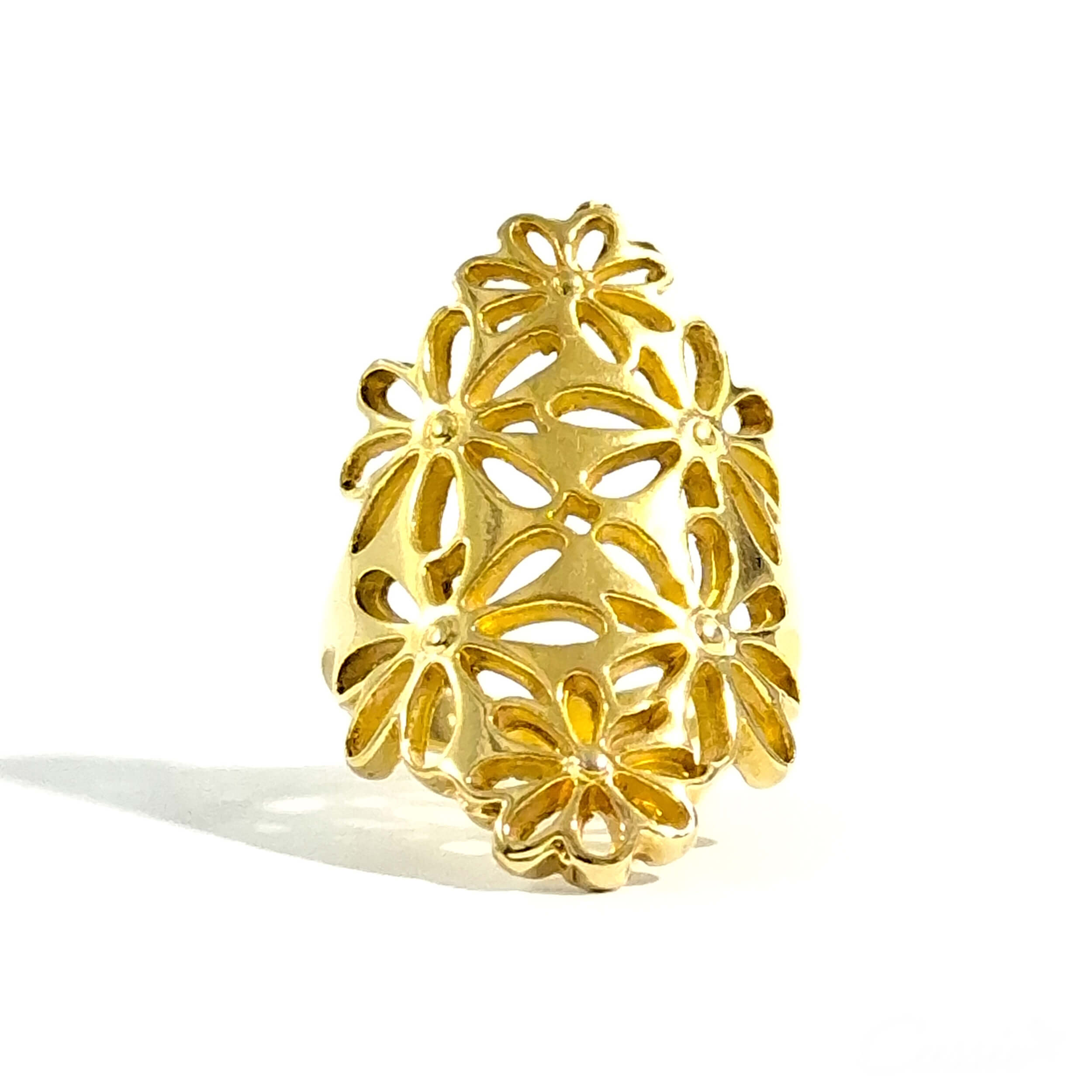Anel grande de flores vazadas.