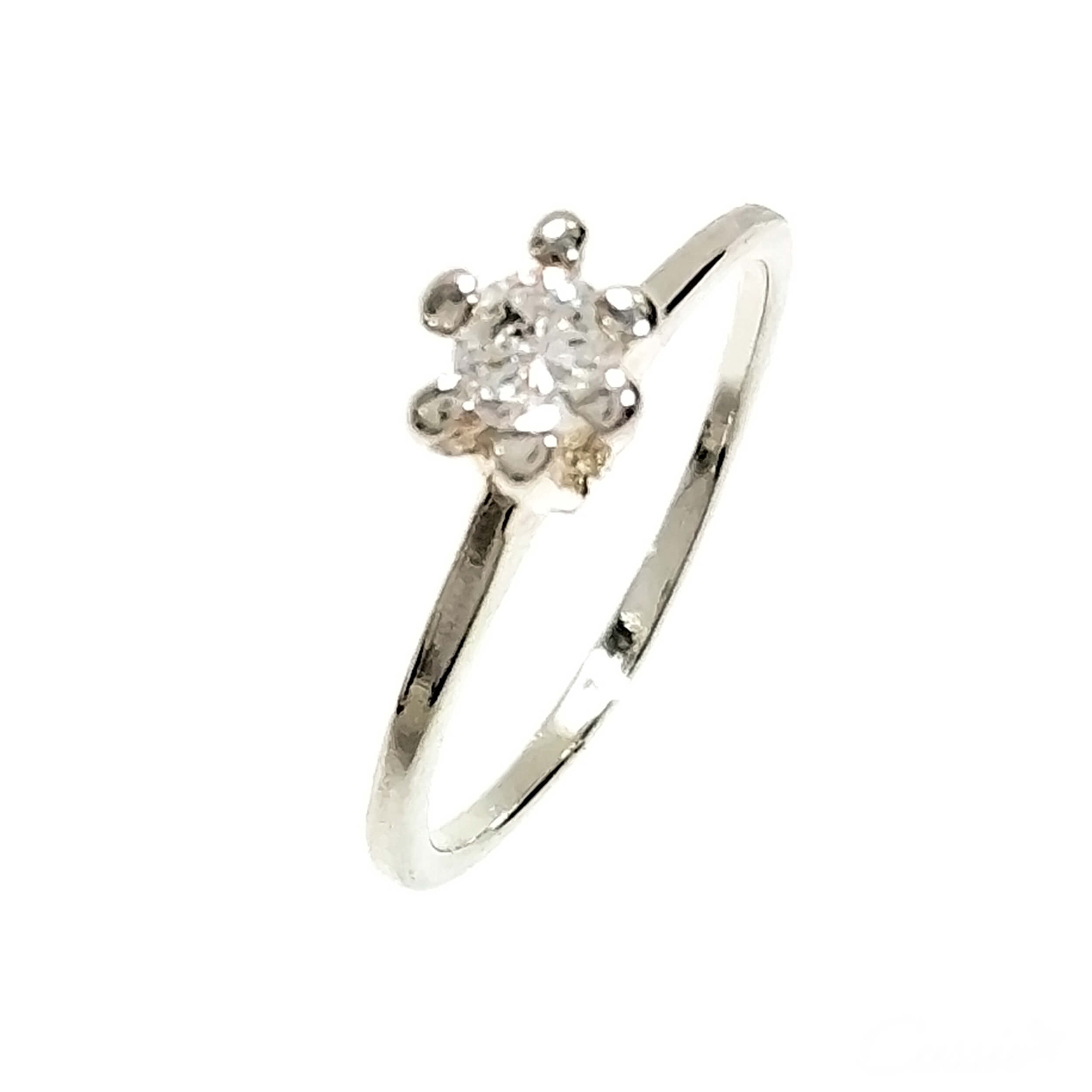 Anel solitário cravejado de uma zircônia pequena.