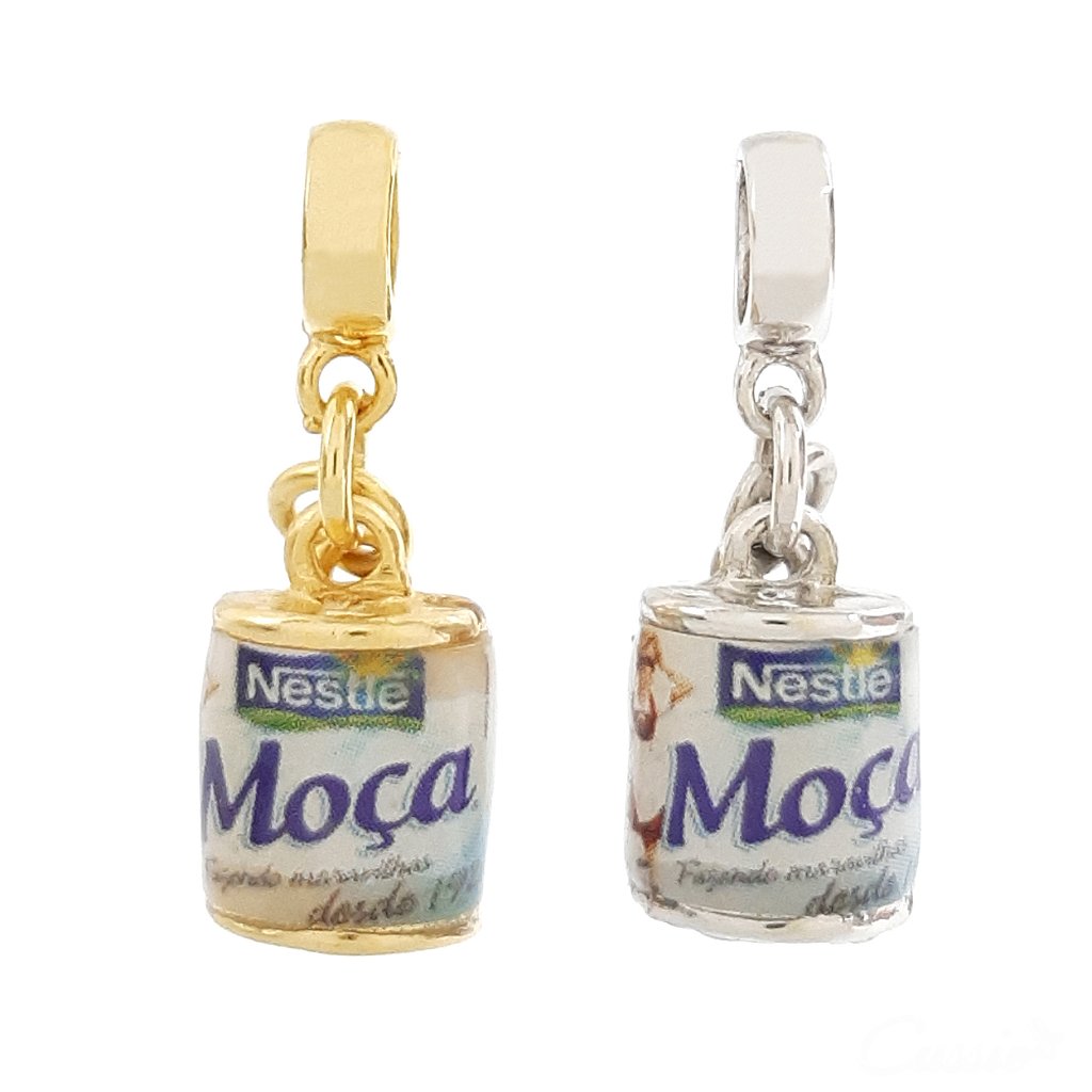 Charm ou berloque de pingente de lata de leite condensado com colher.