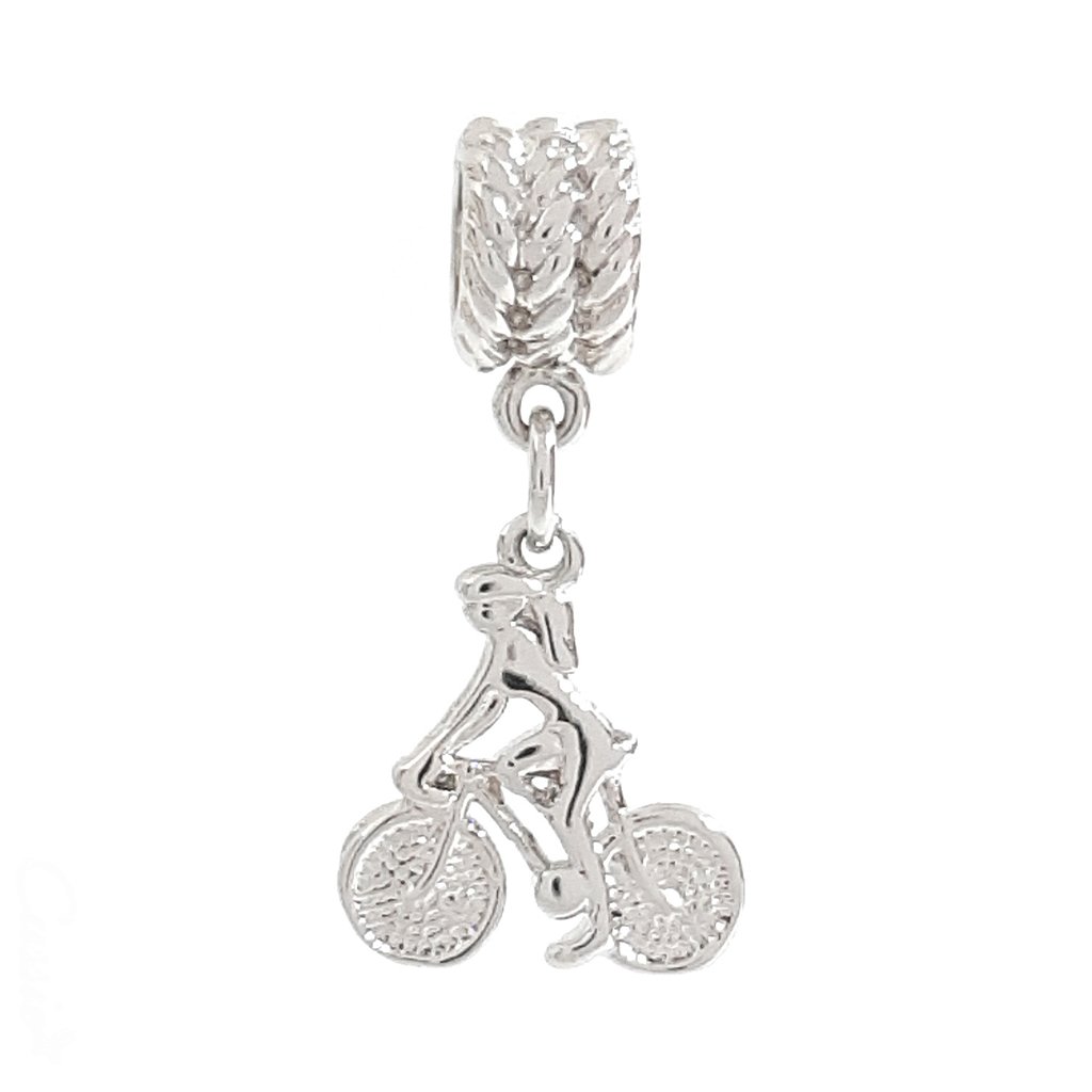 Charm ou berloque de pingente de mulher na bike.