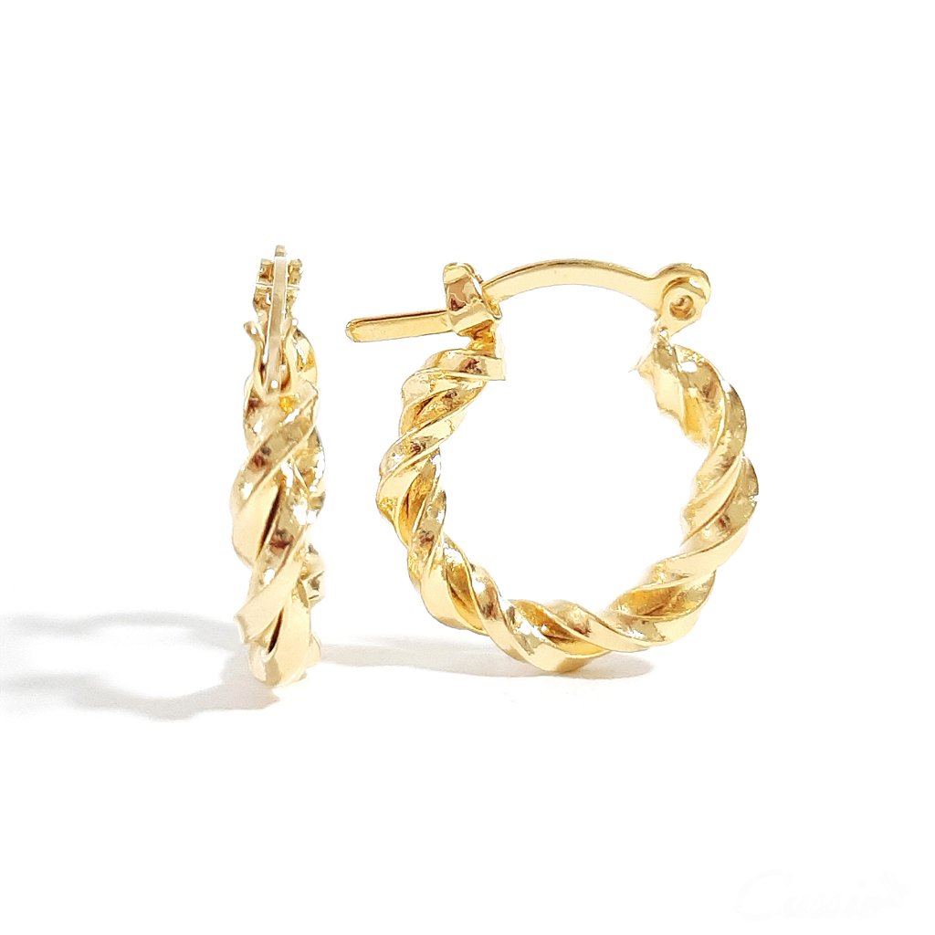 Brinco argola pequena de fio torcido com fecho italiano.