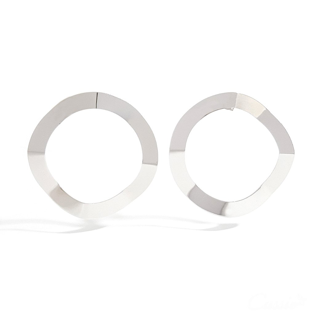 Brinco de círculo grande vazado e ondulado.