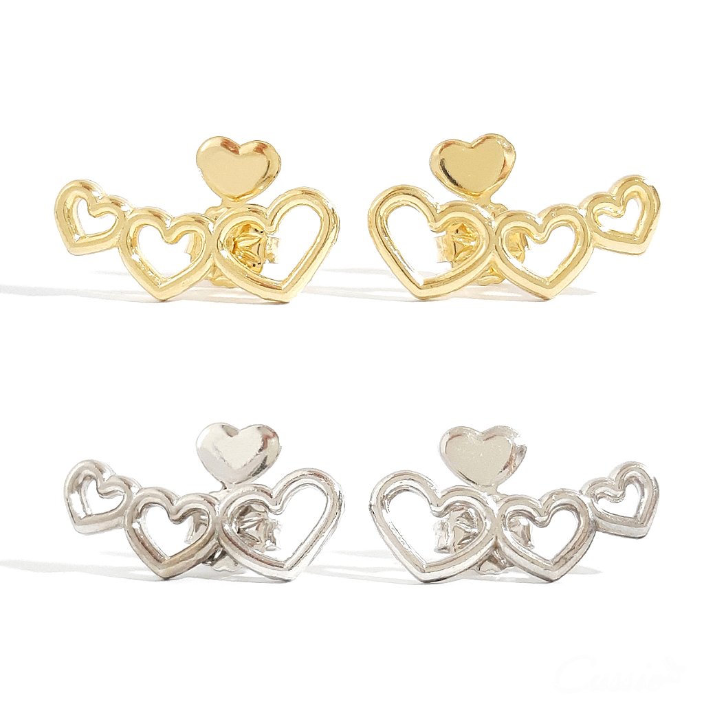 Brinco ear Cuff de três corações. Acompanha a tarraxa mágica de flor, proporcionando melhor ajuste e conforto.