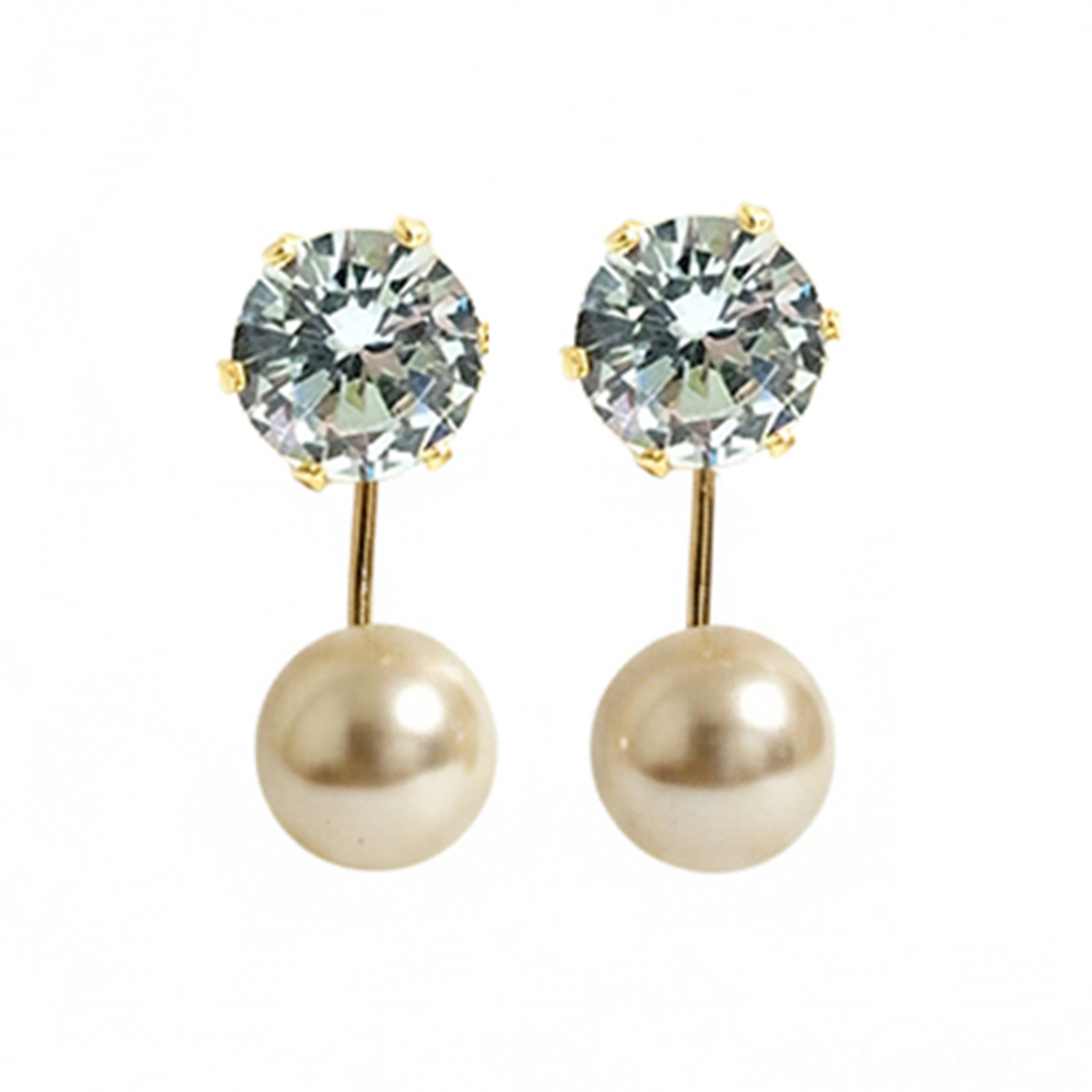 Brinco modelo Grace Kelly, com base de zircônia e pingente de pérola sintética.