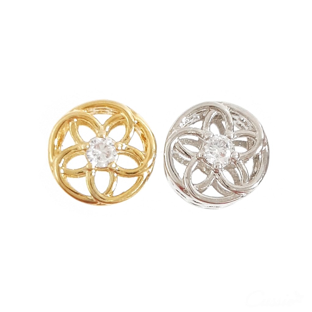 Charm ou berloque separador de flor com zircônia e detalhes vazados em coração.