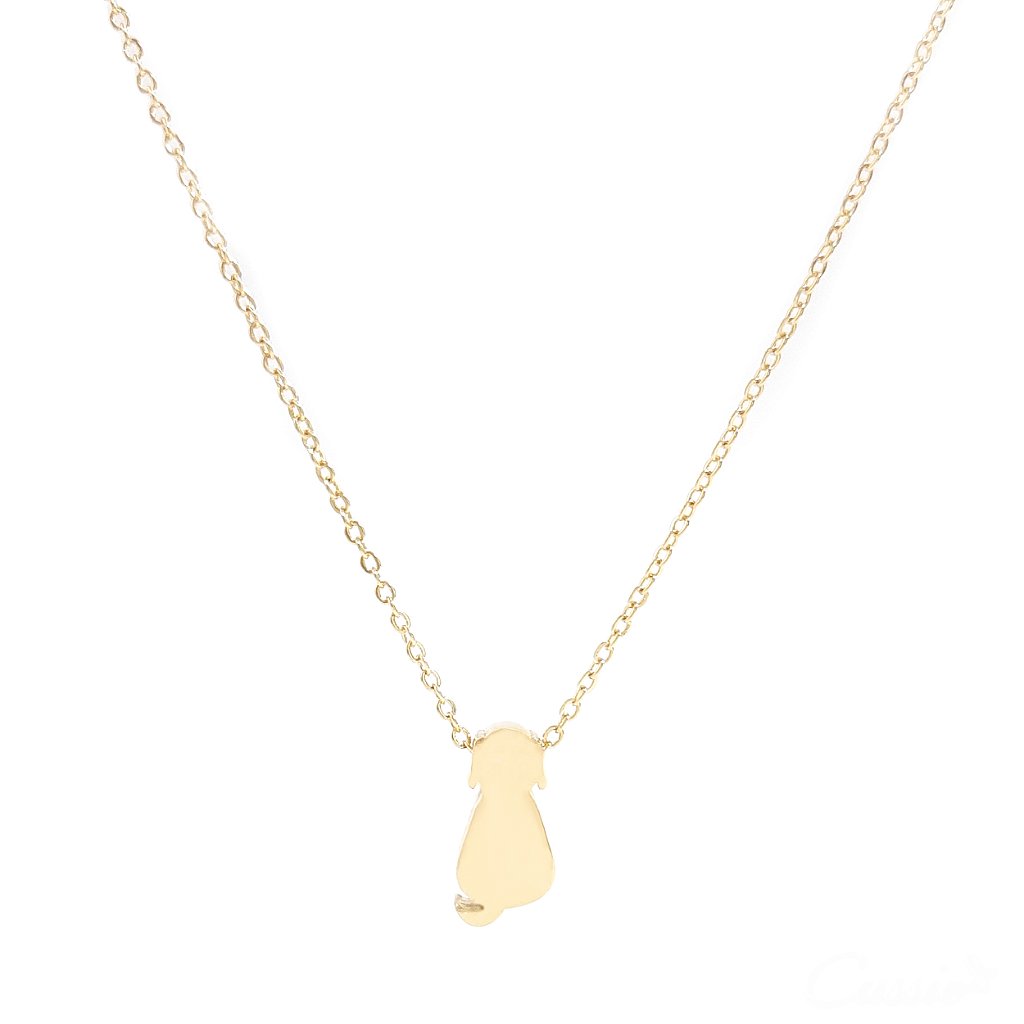 Colar de corrente tipo cadeado com pingente de cachorrinho.