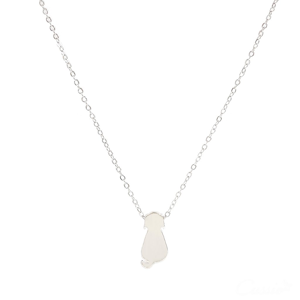 Colar de corrente tipo cadeado com pingente de cachorrinho.