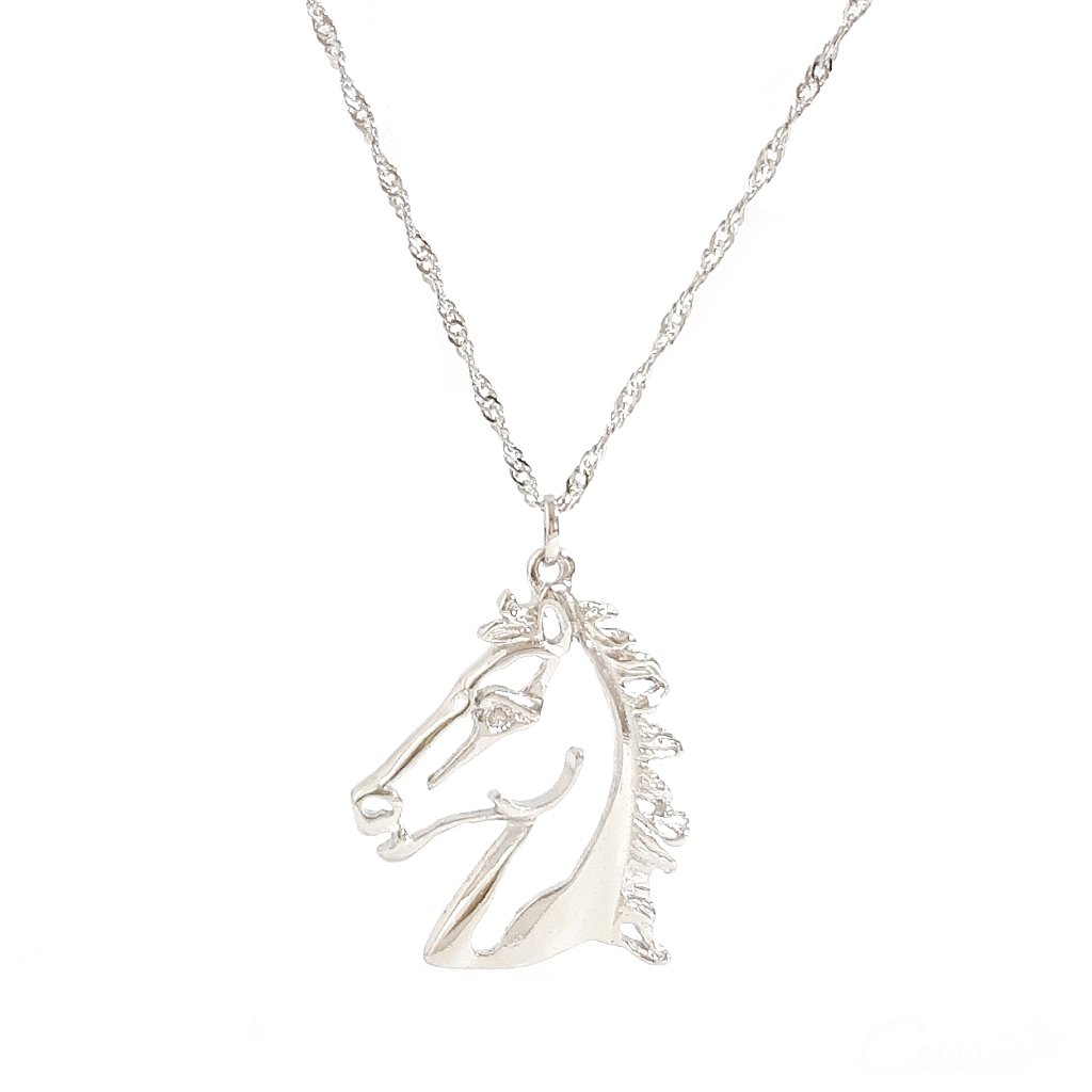 Colar de corrente singapura com pingente de cabeça de cavalo com zircônia.