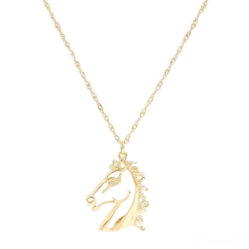 Colar de corrente singapura com pingente de cabeça de cavalo com zircônia.