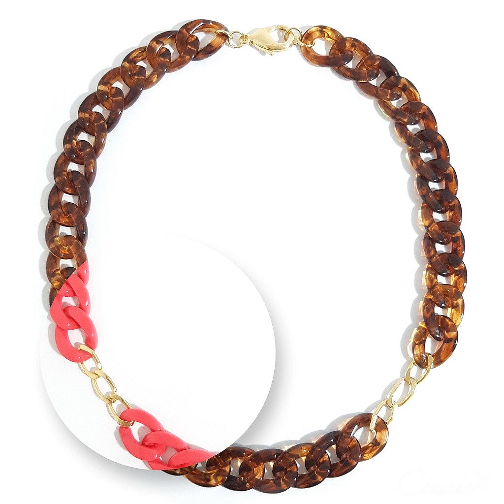 Colar de elos de resina com corrente groumett.