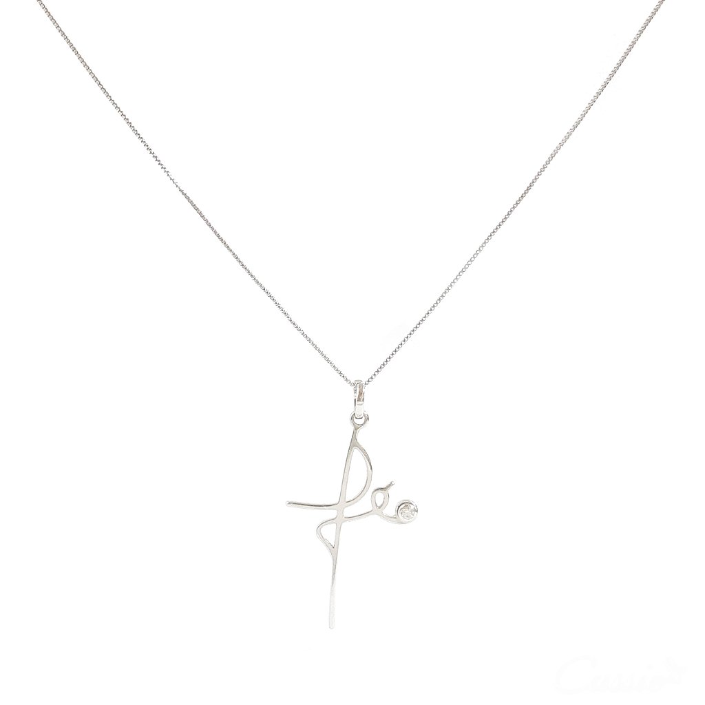 Colar de corrente veneziana fina e pingente Fé com zircônia.