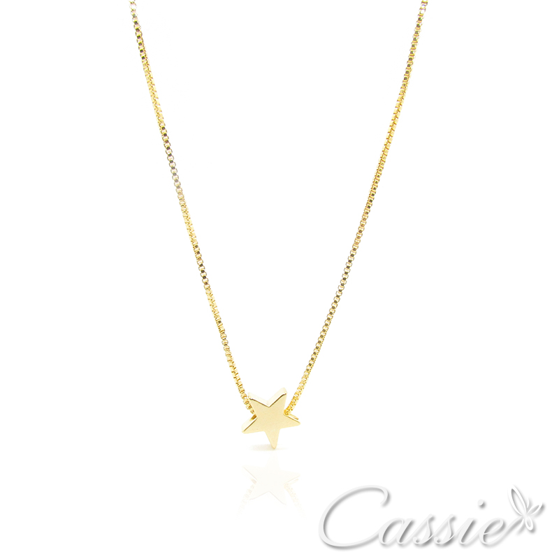 Colar gargantilha de corrente veneziana com pingente de estrela pequena com detalhe em uma das pontas e extensor.