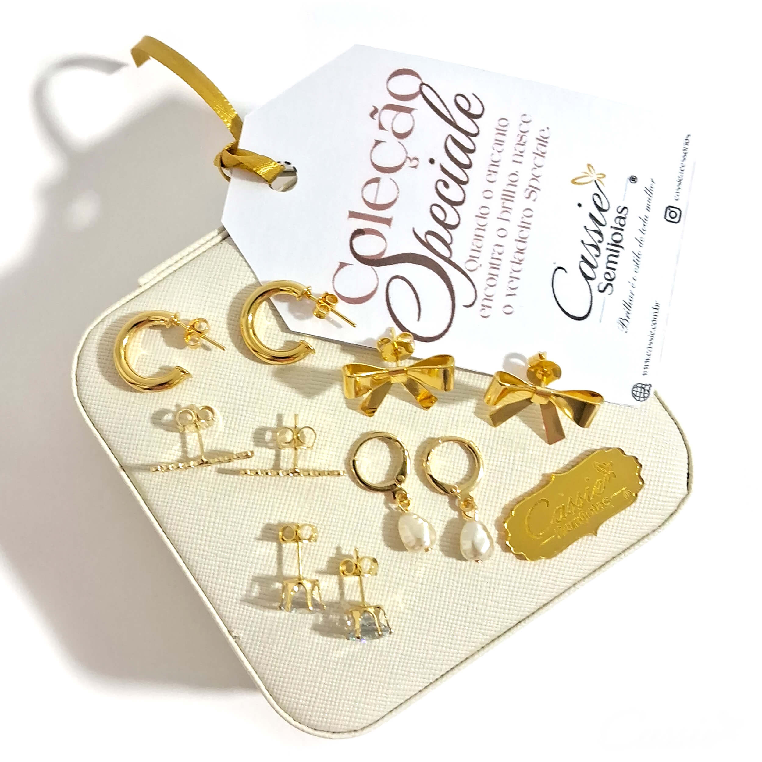 O Kit Premium Essencial é composto por cinco modelos de brincos + Porta-joias Cassie.