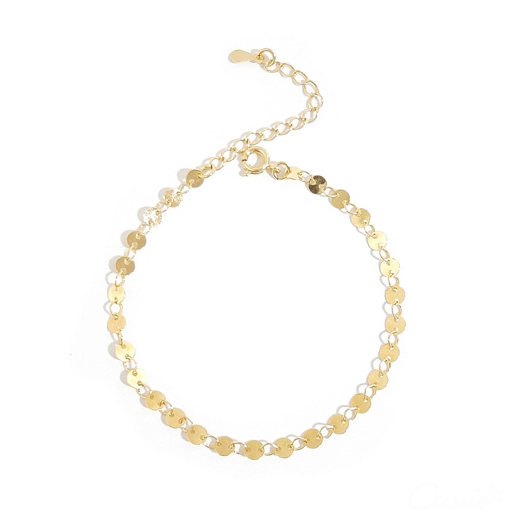 Pulseira feminina de chapinhas redondas e lisas com extensor.