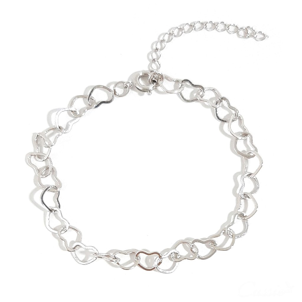 Pulseira feminina de corações grandes entrelaçados com extensor.