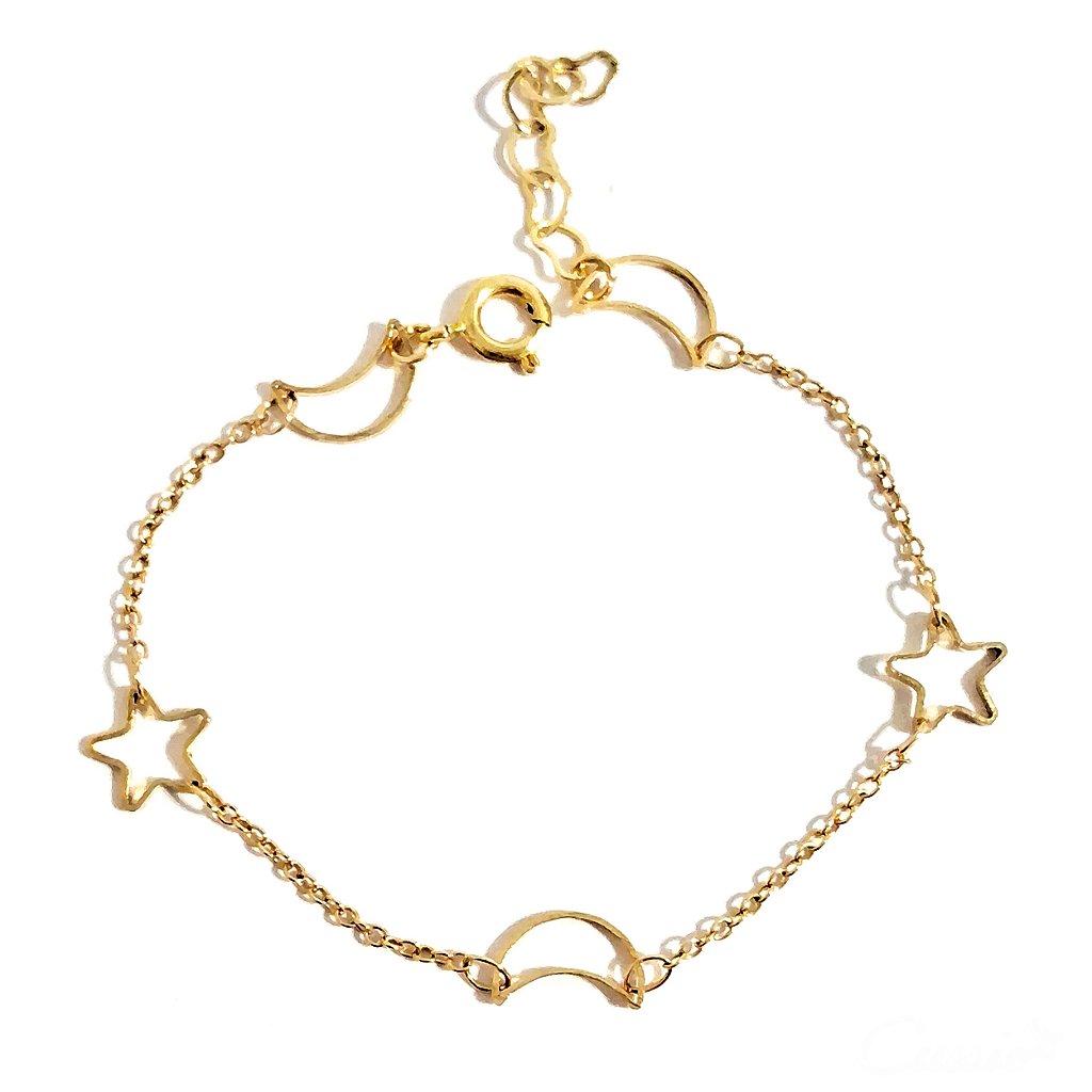 Para quem ama acessórios com significado, a Pulseira Lua e Estrela é uma escolha perfeita. Com detalhes vazados de estrelas e luas, essa semijoia banhada a ouro combina leveza, brilho e uma pitada de magia. O modelo é ideal para quem curte um estilo mais delicado, com uma pegada moderna e cheia de personalidade. Use sozinha para um visual minimalista ou combine com outras pulseiras finas para criar um mix encantador e estiloso. O extensor ajustável garante o caimento ideal para diferentes tamanhos de pulso, oferecendo mais conforto e versatilidade no uso diário. Ideal para presentear ou compor aquele mix de pulseiras com estilo. Brilhe com elegância todos os dias com a Cassie!