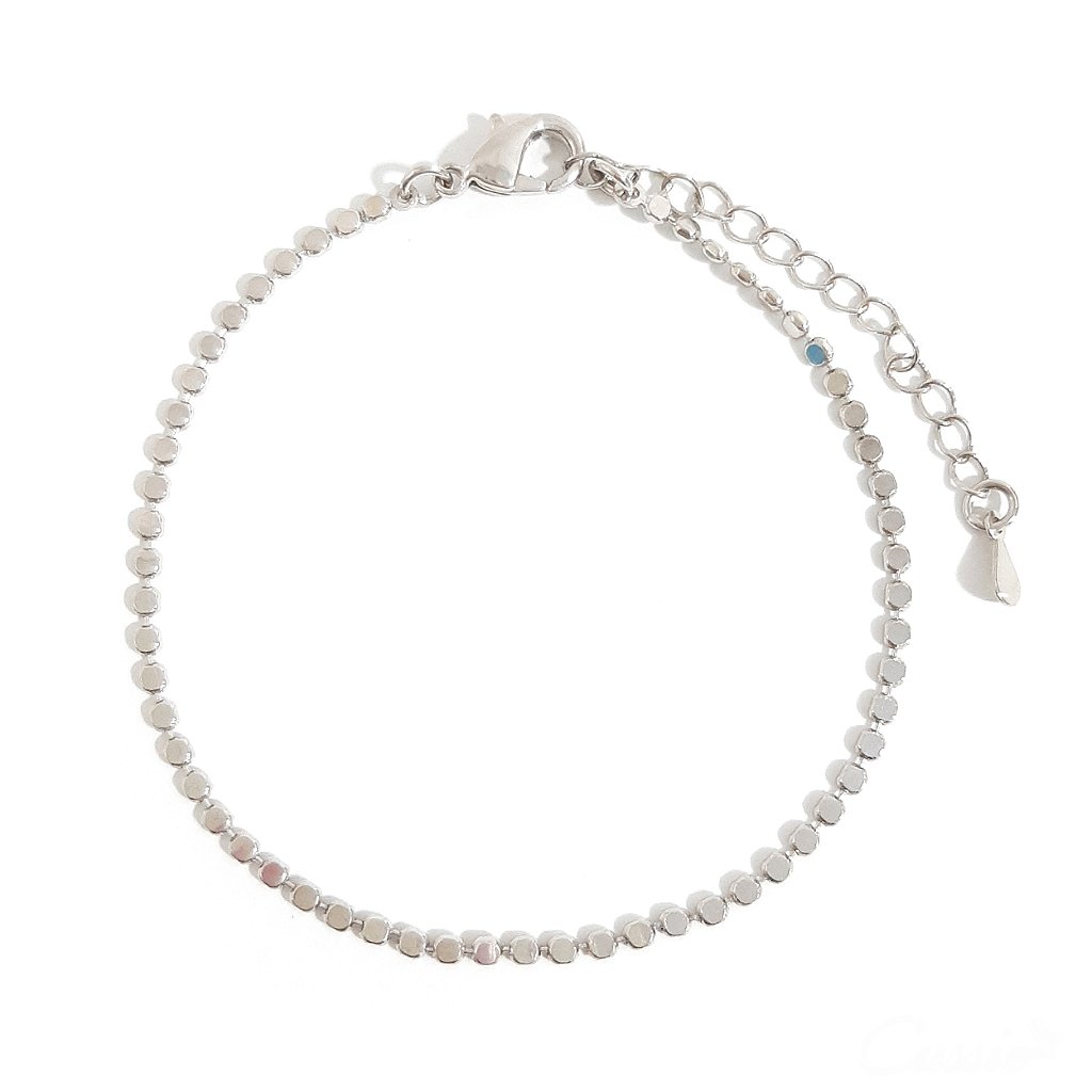 Pulseira feminina de mini bolinhas achatadas com extensor.