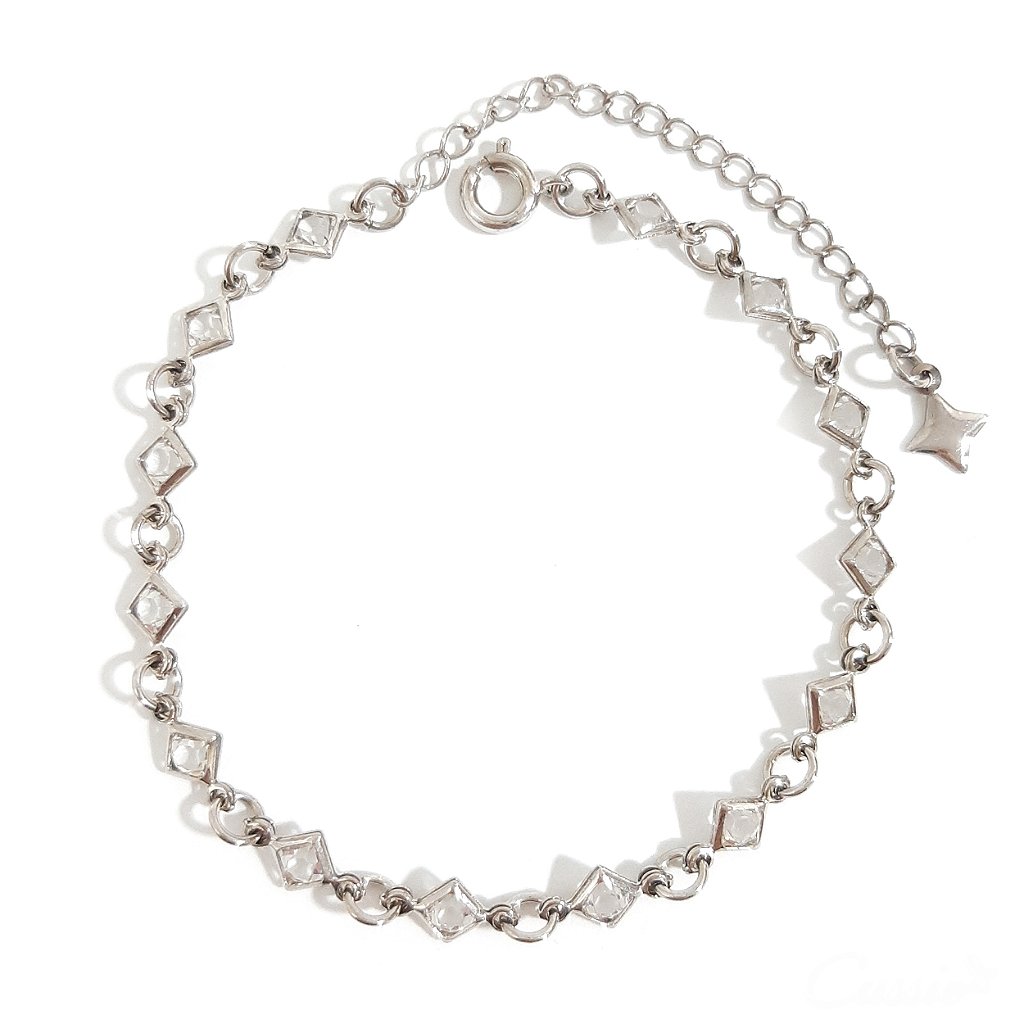 Pulseira feminina de quadradinhos de zircônias com extensor.