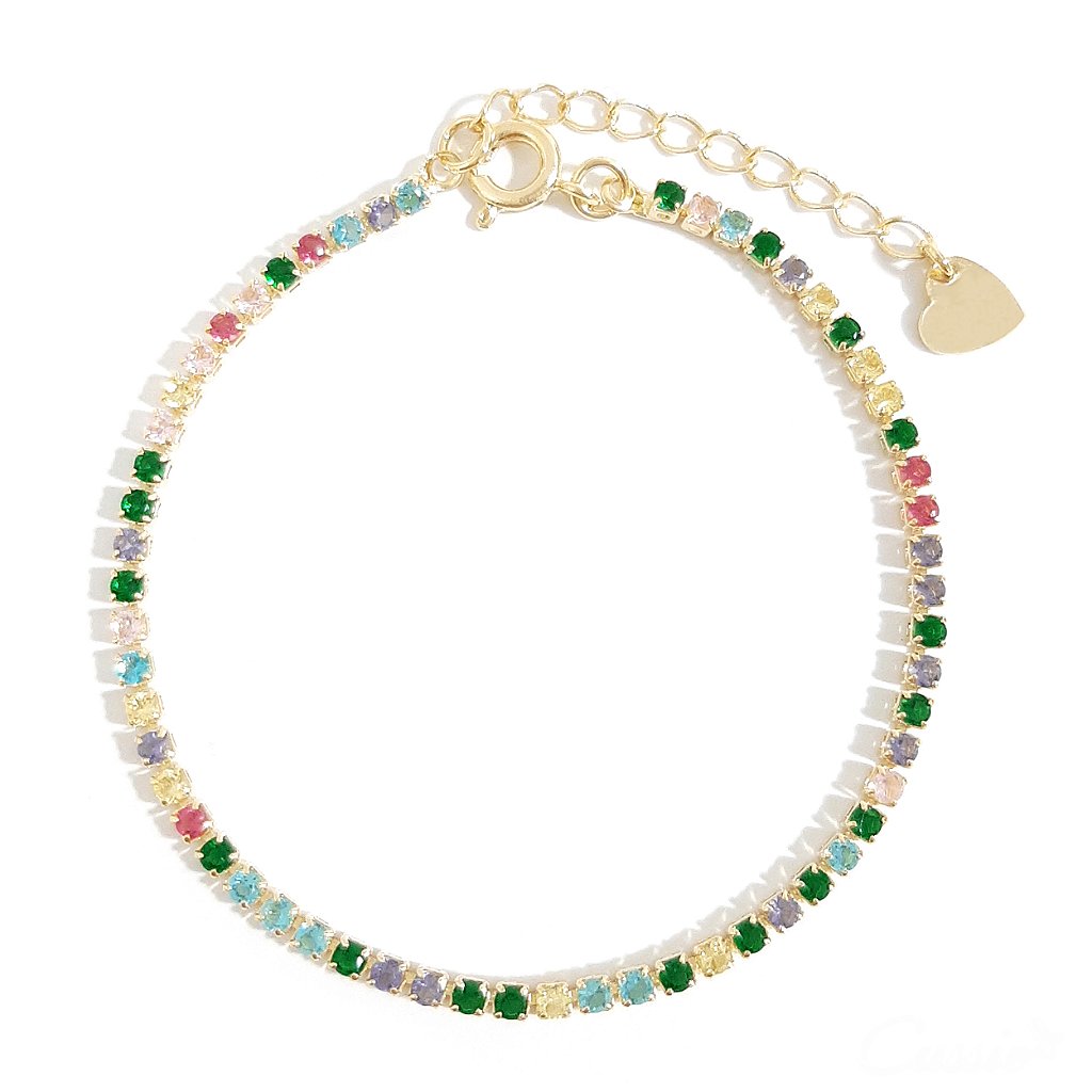 Pulseira riviera de zircônias coloridas em tons claros com extensor.