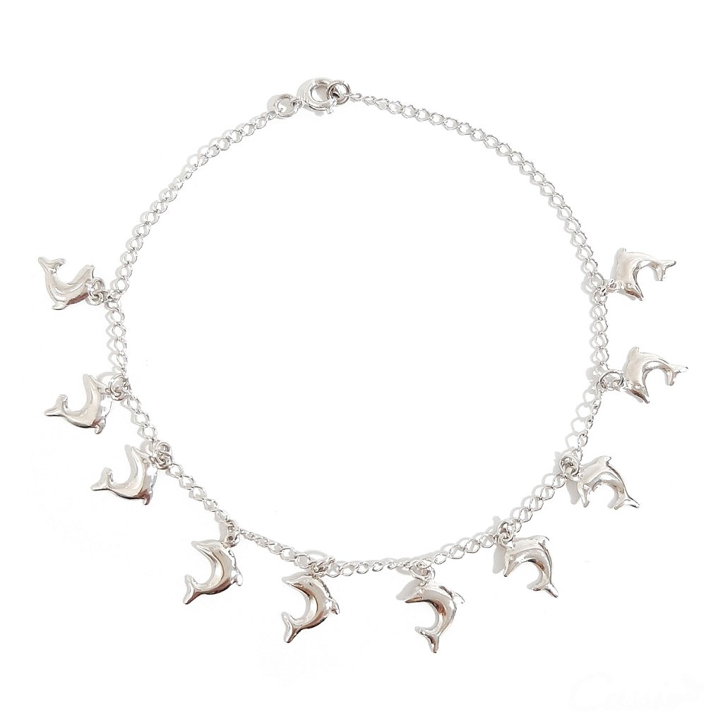 Tornozeleira de corrente groumett e dez pingentes de golfinhos